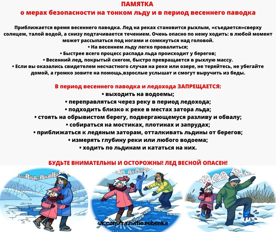 Принять предупредительные меры - создать уплотнения в притворах дверей и окнах подвальных, цокольных и первых этажей; очистить от мусора водосбросные канавы в районе Вашего дома; закрыть вентиляционные отверстия в подвальных помещениях с целью предупреждения поступления наружных поверхностных вод; освободить подвалы от имущества и продовольствия; предусмотреть вывод животных и птиц из подтапливаемых помещений в безопасное место; заготовить мостки, доски и опоры к ним для обустройства проходов к дому и надворным постройкам на подтапливаемых участках; заранее составить перечень документов, личных вещей и имущества, необходимых в случае эвакуации; уложить в рюкзак необходимые теплые вещи, двухсуточный запас продуктов питания и воды; о возникновении подтоплений, и выявленных причинах, сообщайте по телефону 101, с мобильного 112.